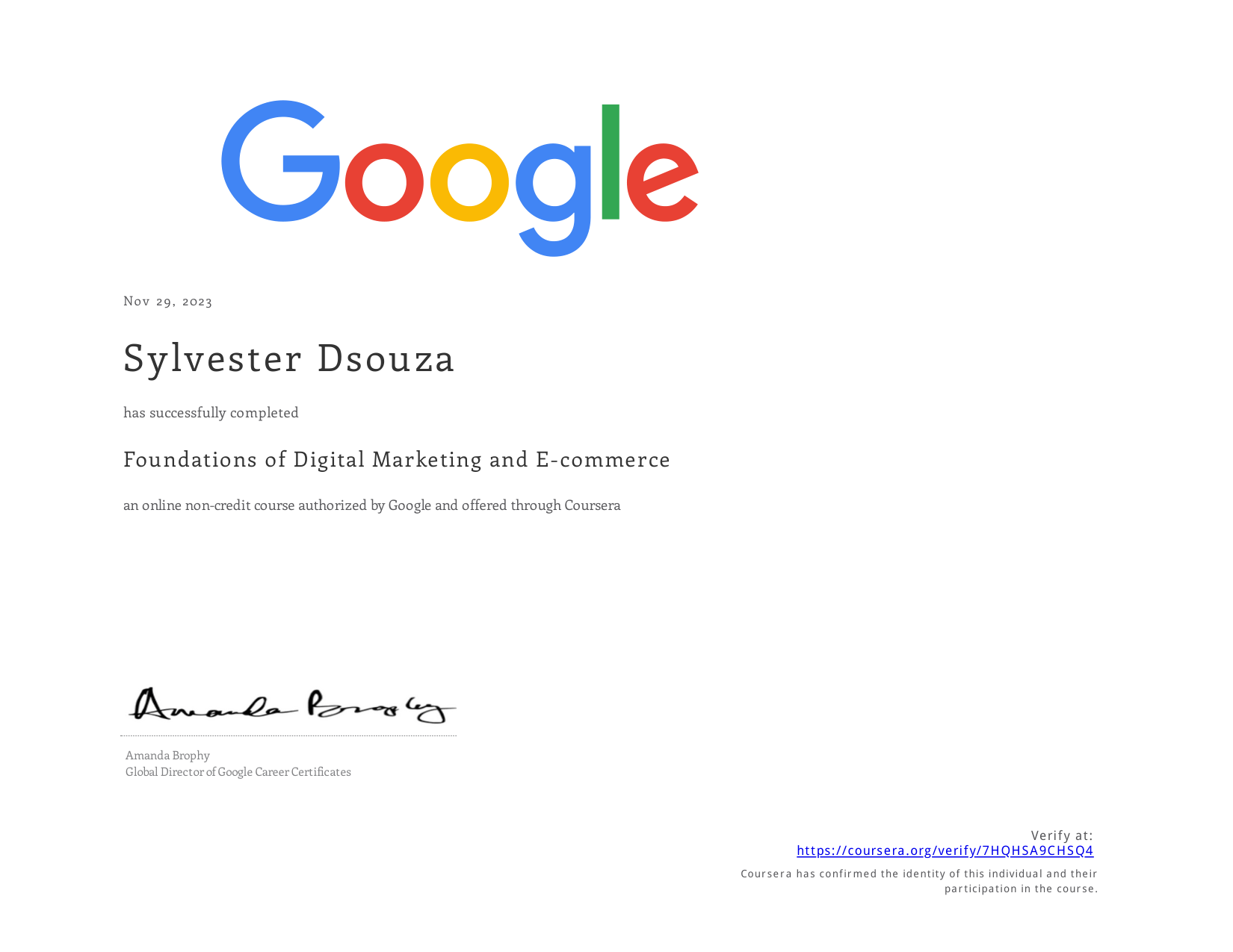 Digital Marketing Specialist based in Belagavi, India, with a strong educational foundation from the Foundations of Digital Marketing and E-commerce course.